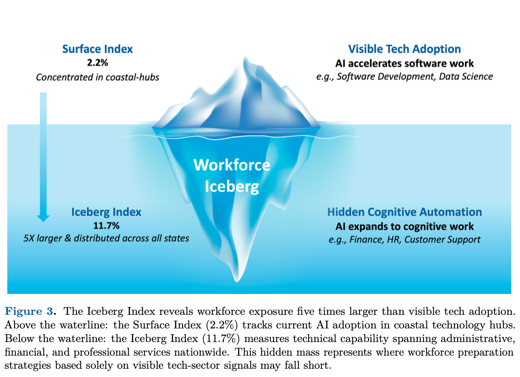 I spent the week immersed in new research on the Iceberg Index, which models 151 million U.S. workers, 923 occupations, and 32,000 skills using the Frontier supercomputer. It reveals something that resets how you think about AI in organizations.