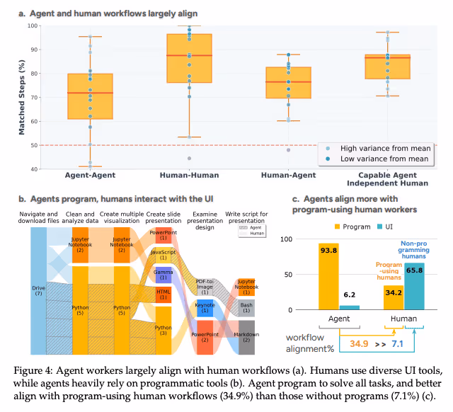 The study compared human workers and AI agents on 16 real-world tasks across jobs like finance, engineering, writing, and design. Then it zoomed in on how each completed the work, not just the outcome, but the step-by-step process.