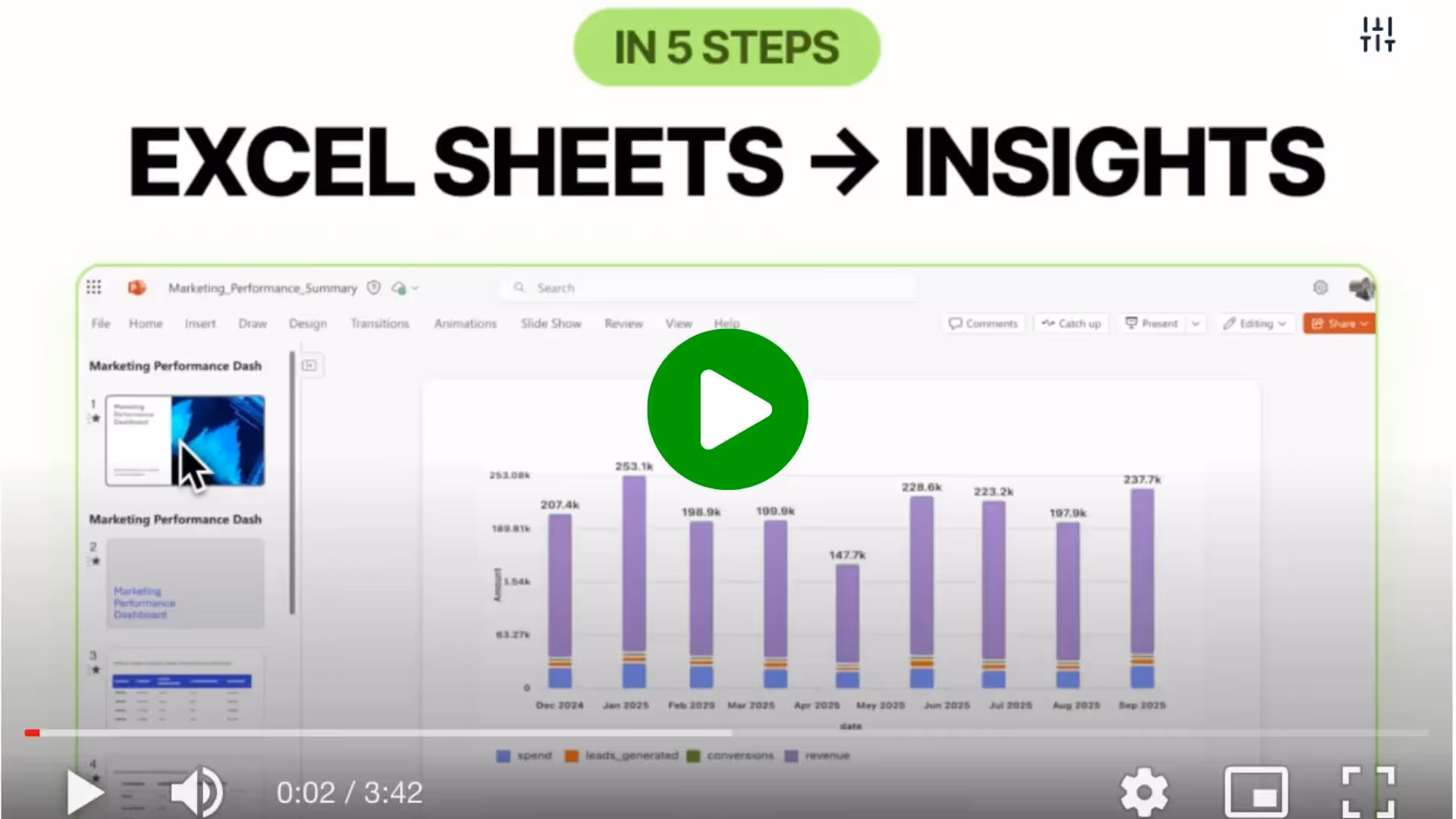 “Compile the insights and visuals from this workbook into a PowerPoint file.”