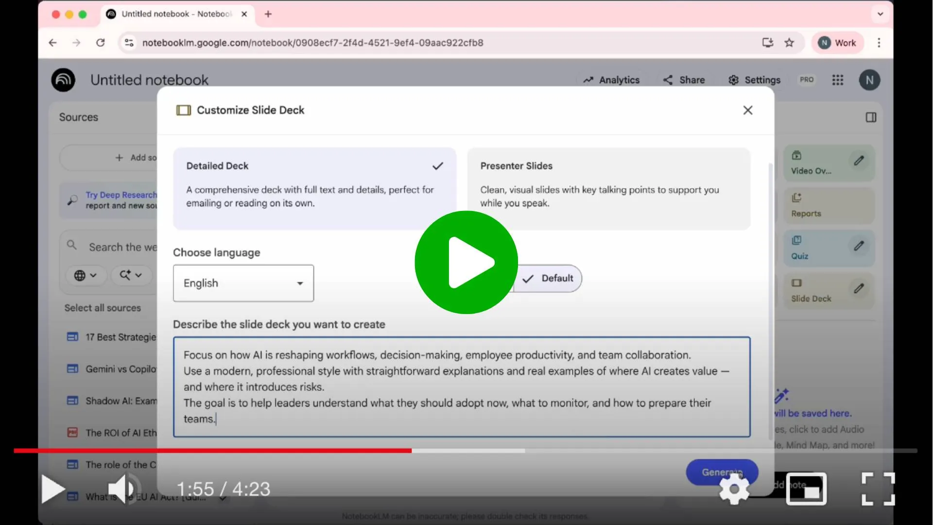 PRO Members: watch the video tutorial here: In 5 Steps: Create a Slide Deck + Infographic Using NotebookLM
