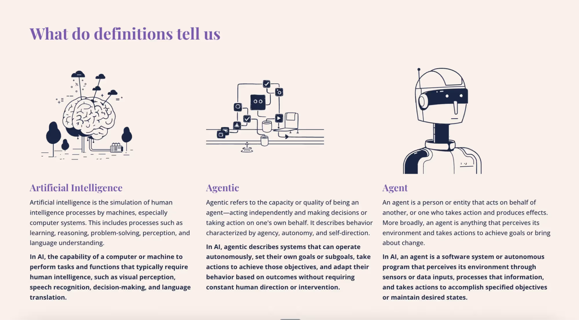 So, a helpful mental model to use is that an Agent is the concrete tool; Agentic is the degree of autonomy or capability in the system.