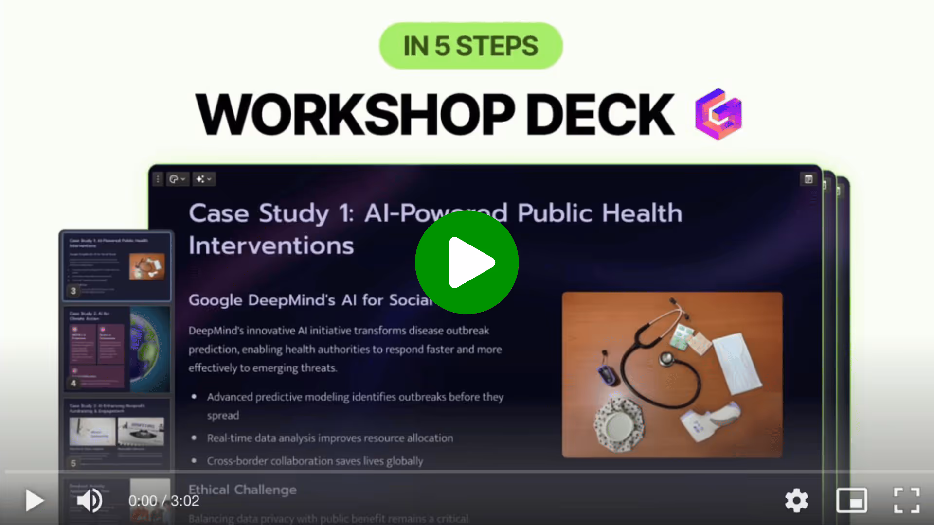 This week, we’ll put those features into action with a step-by-step tutorial: how to use Gamma Agent to build an engaging workshop deck in 5 steps.