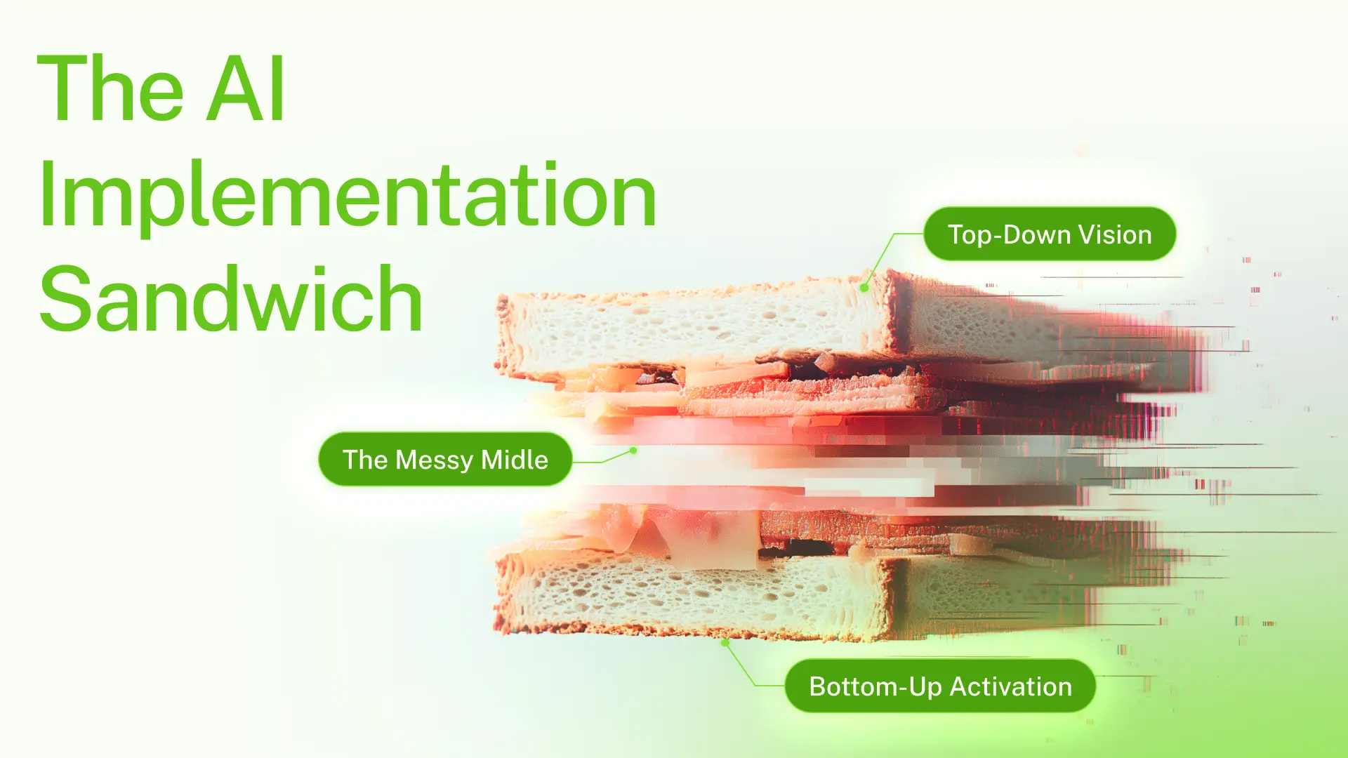 Successful AI transformation requires alignment between two critical forces: top-down strategic clarity and bottom-up practical experimentation, with a thriving connective layer that most companies overlook: