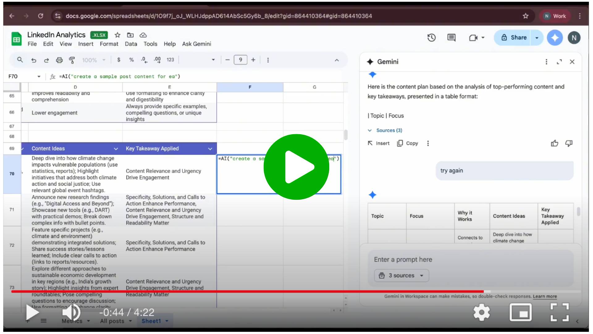 Tutorial: Turn LinkedIn Analytics into an actionable plan with Gemini in Sheets