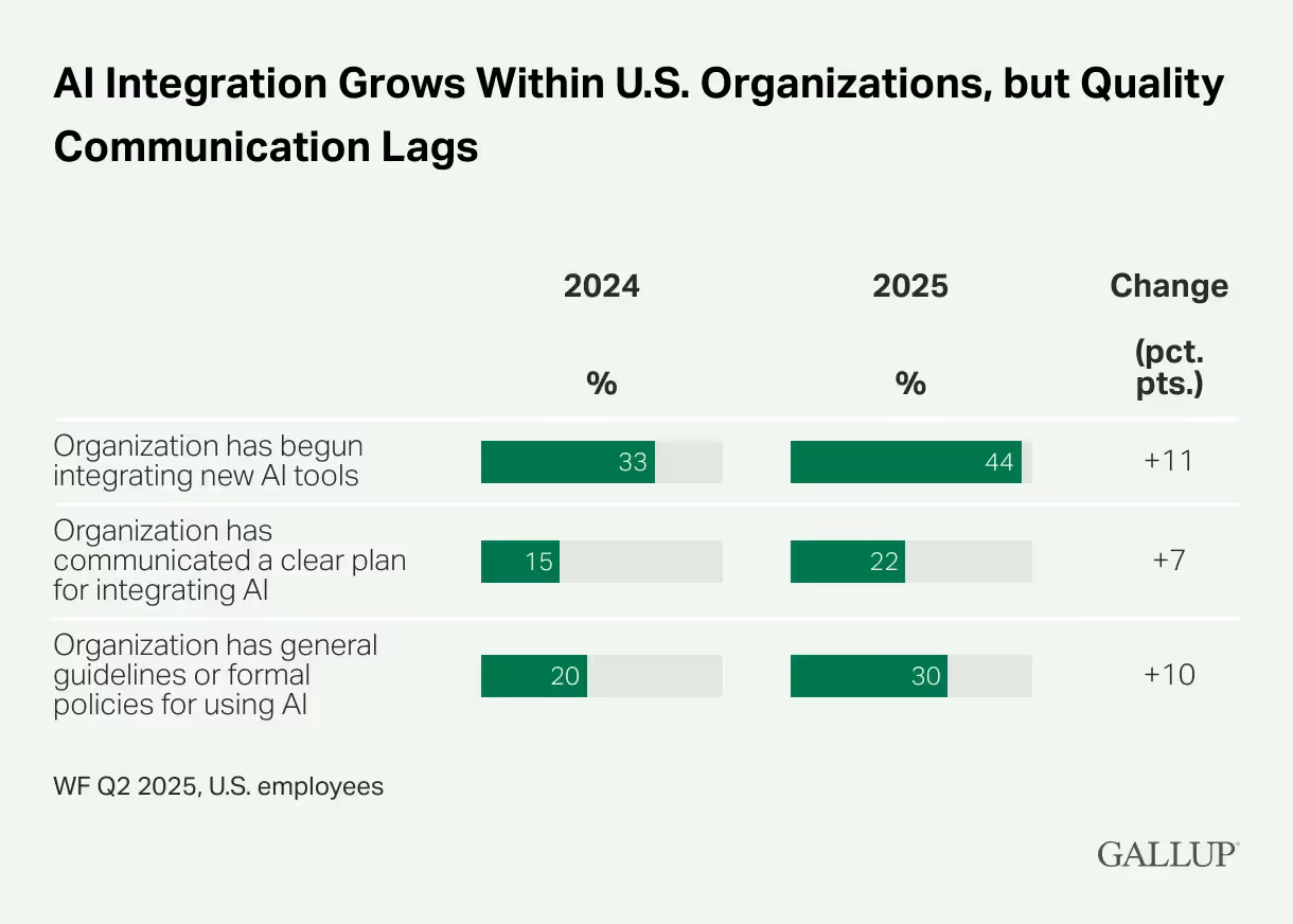 New Gallup data from this week show that only 8% of US employees use AI daily: